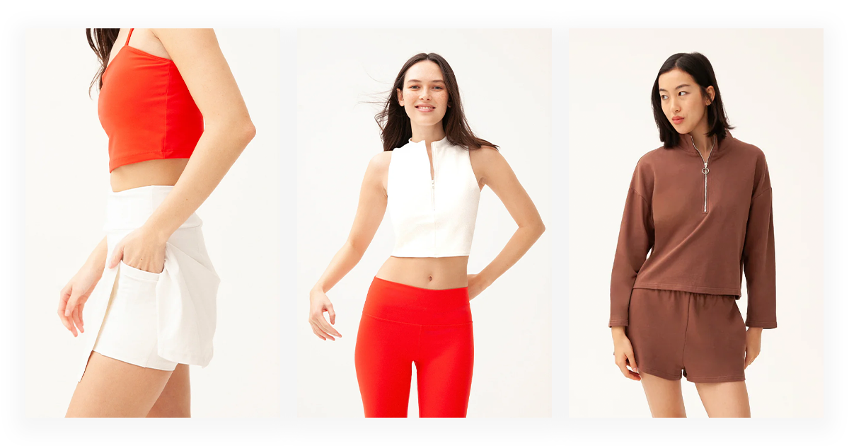 L-R: Sport Skort, Peekaboo Crop, Comfort Zone Pullover; photos from Our Recess’ website