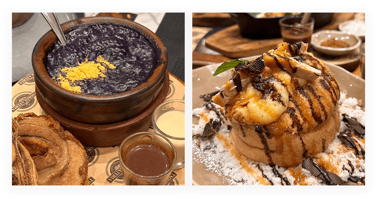 L-R: Tablea Champorado, Pancake Soufflé; photos from Tsokolateria on Facebook
