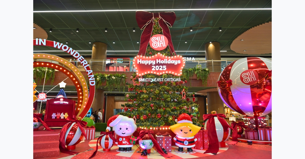 SM City East Ortigas launches its Christmas Carnival, starring Eyo and Friends. The activity center features a Giant Inflatable Hot Air Balloon and a 25-foot ribbon-crowned Christmas tree. Shoppers can enjoy character photo spots and musical performances, including a unicyclist juggler show.