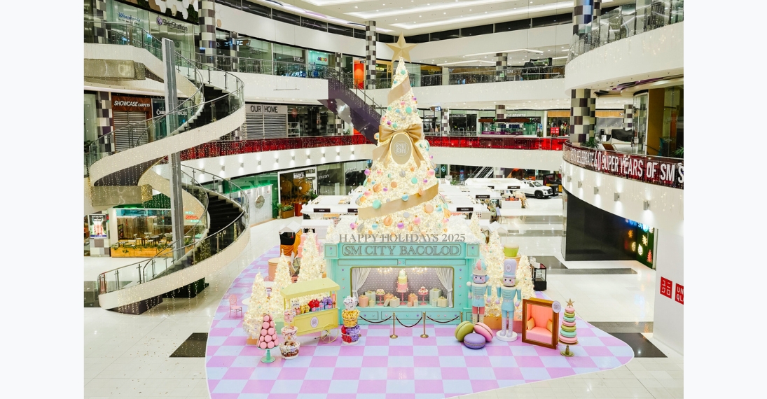 SM City Bacolod’s Unwrapping Sweet Surprises transforms its North Wing Main Atrium into a pastel dreamscape of confectionery-inspired décor. The 50-foot white Christmas tree features a luxury pastry shop motif, reflecting Bacolod’s well-loved heritage of sweets and culinary delights.