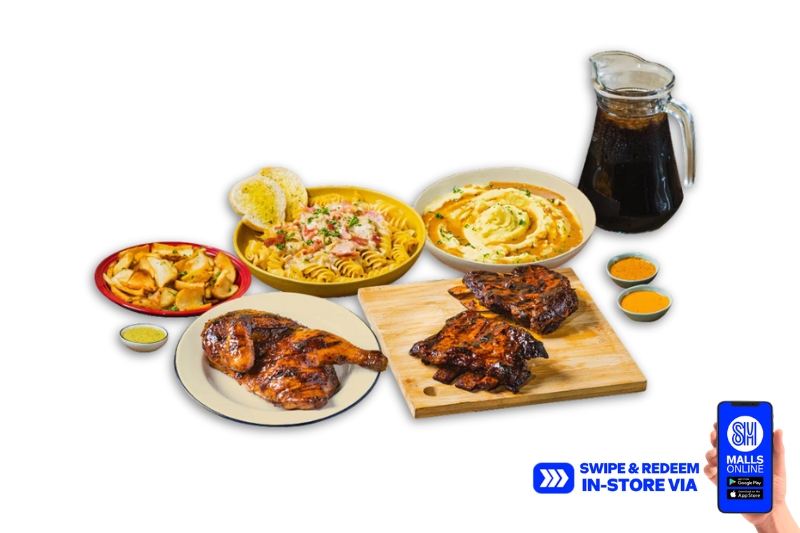 The mouthwatering spread consists of one (1) Half Chicken, two (2) Quarter Back Ribs, one (1) serving of Grinchos, one (1) serving of pasta (your choice of Angus Bolognese, Bacon Cream Fusilli or Shrimp Bisque), one (1) large side of choice, and one (1) 1.5-liter bottle of Coke. Whatever dad’s preference, one of these eats is sure to fill his belly and make his day.