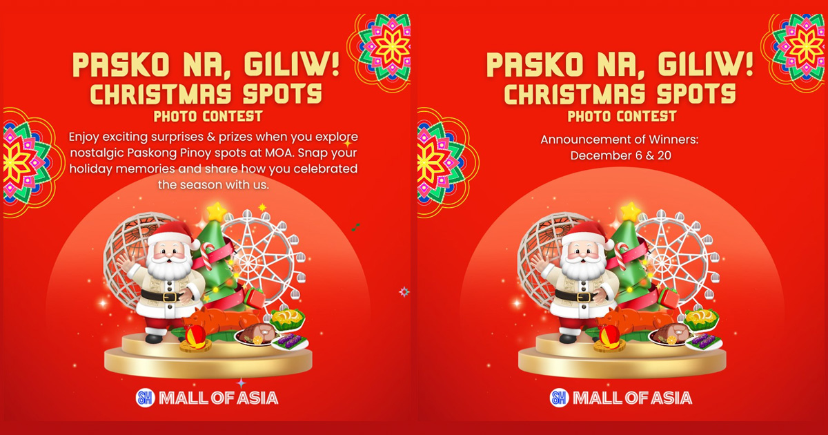 Join our photo contest today by simply snapping a photo at any Paskong Pinoy spot, and post it on Instagram or Facebook together with a caption about your experience and what Christmas at MOA means to you. Make sure that your account is public, tag @themallofasiaofficial, and use #PaskongPinoyAtMOA in your posts!
