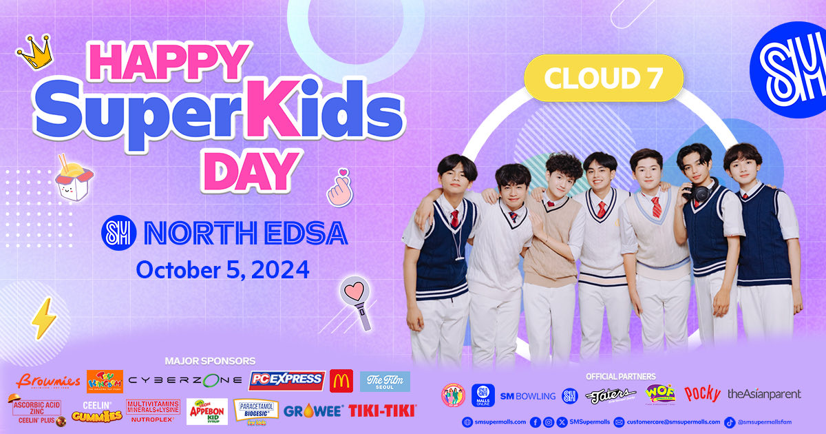 SM will be hosting the SUPERKIDS MONTH LAUNCH on October 5, 2024, Saturday at SM City North Edsa Annex Atrium, kicking off a fun-filled, month-long extravaganza for our SuperKids! Expect a performance from Pinoy pop group Cloud 7, the launch of the SuperKids K-POP Dance Fest Competition, and a K-POP costume contest!