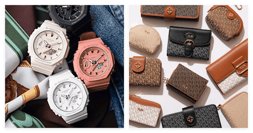 Photos of G-Shock watches (left) and leather wallets (right) from At Tokyo and CLN on Facebook