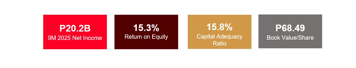 China Banking Corporation (Chinabank; PSE: CBC) sustained strong growth through the third quarter, posting a consolidated net income of P20.2 billion for the first nine months of 2025, an increase of 10% year-on-year. This performance resulted in a return on equity of 15.3% and a return on assets of 1.6%, still among the highest in the industry.