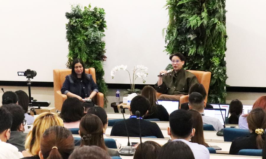 (L-R): SM Supermalls’ Senior Vice President for Human Resources Cheryll Agsaoay and President Steven Tan share company updates for employees at the Town Hall meeting.