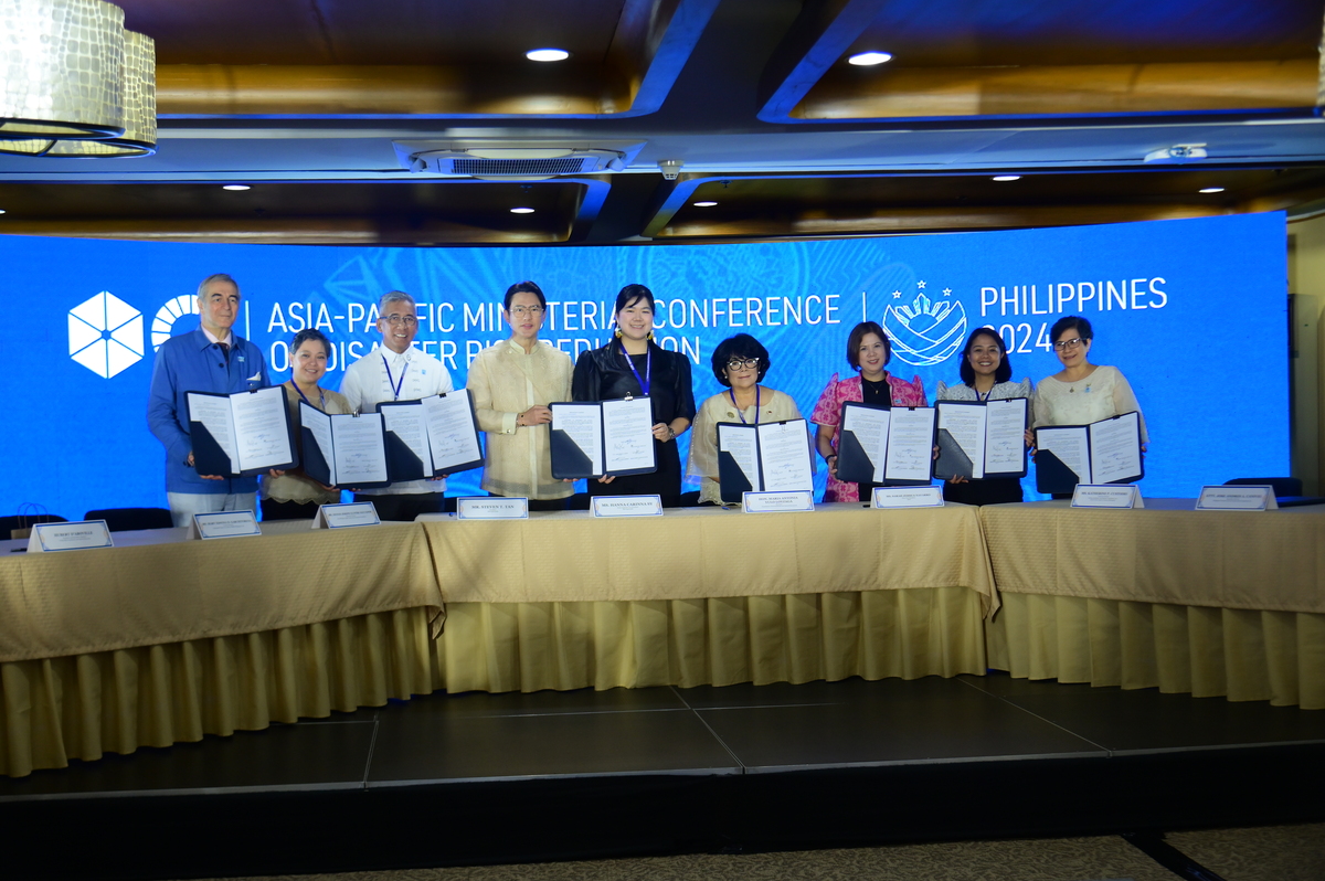 Pictured: Hans Sy and Hanna Carinna Sy with His Excellency Kamal Kishore, Head of the UNDRR and Hon. Marco Toscano-Rivalta, Chief of UNDRR Regional Office for Asia Pacific, during the Save From Extinction MOU signing event