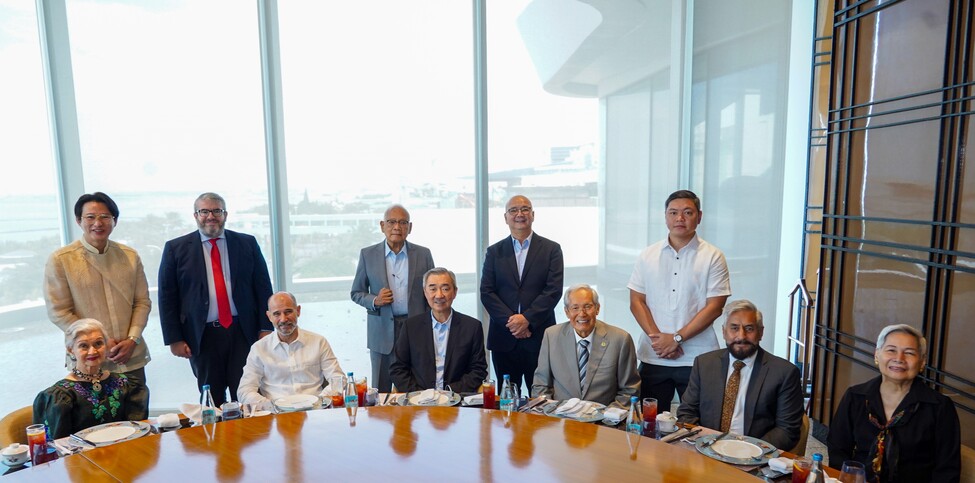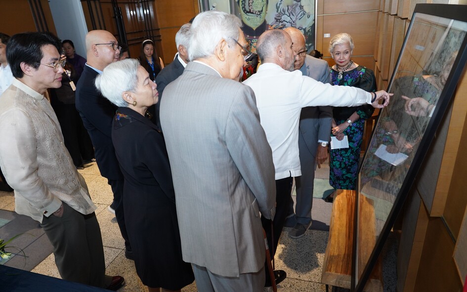 Representatives from the SM Group and Museo del Galeón, alongside the Embassies of Spain and Mexico in the Philippines, discuss Dr. Jaime Laya’s donation of a reproduction of the Velarde Map.