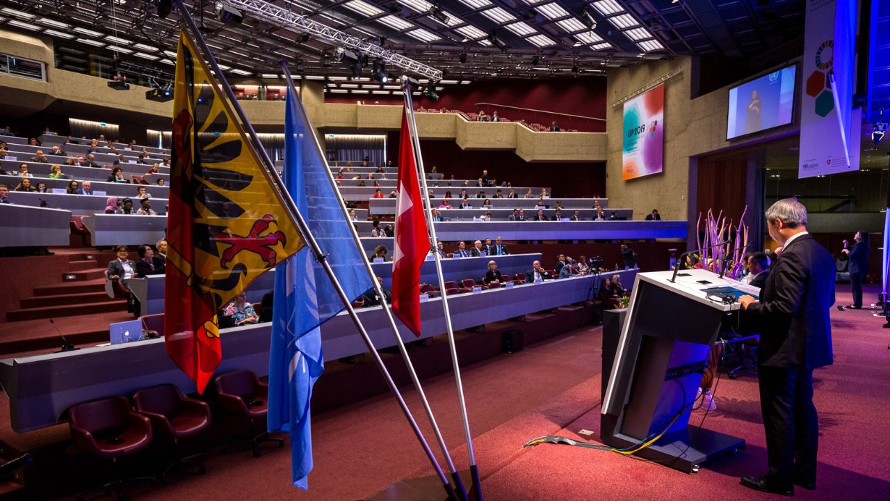 SM Prime Chairman of the Executive Committee Hans Sy addresses the plenary at the United Nations 2019 Global Platform.
