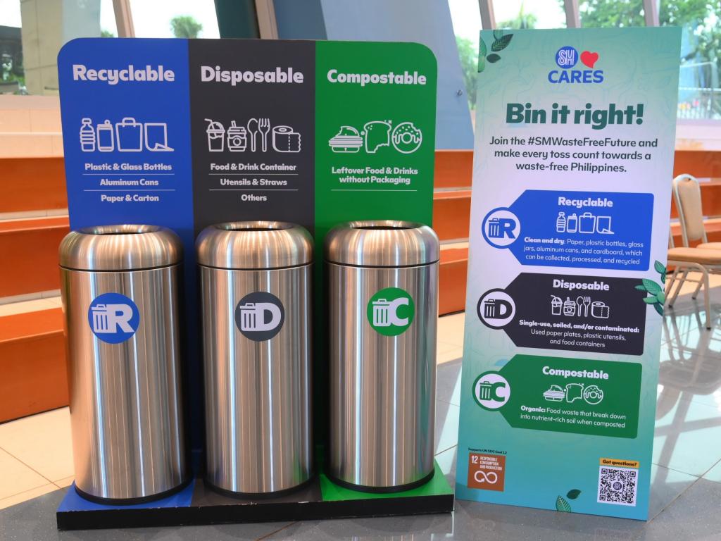 Bin it right! SM Cares promotes proper waste segregation with clearly marked bins for recyclables, disposables, and compostables—helping communities take part in building a waste-free