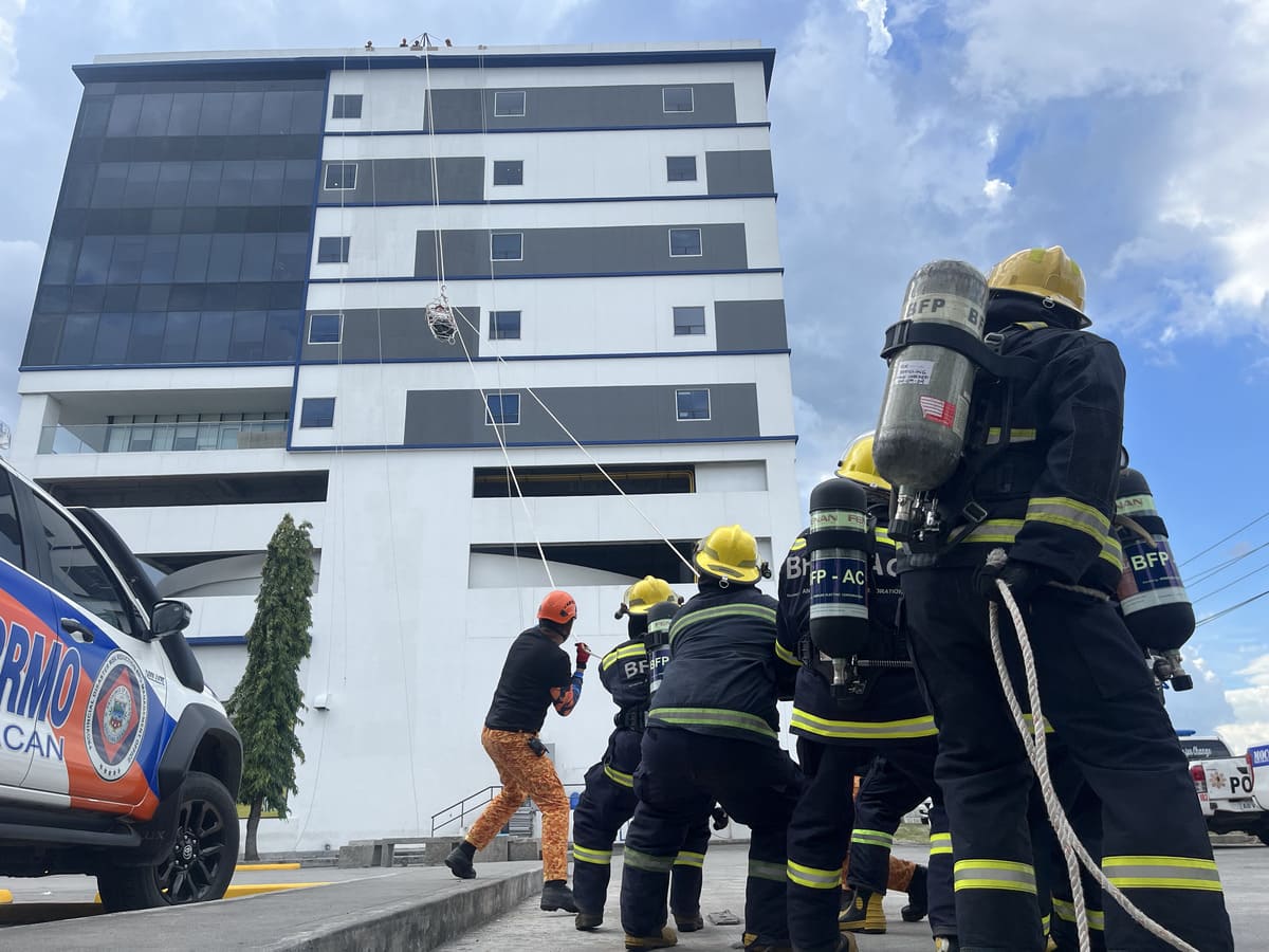 Public and private sector teams implement the Incident Command System as the Bureau of Fire Protection showcases high-angle rescue at SM City Clark.