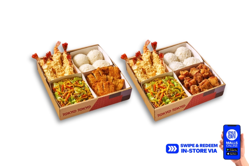Have a go at your Japanese favorites in a special family-sized bento box for only P999 at Tokyo Tokyo. Called “Grupo Bento,” this complete meal stars rice and noodles accompanied by a protein or two like meat or seafood, and sides.