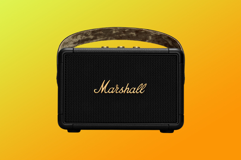 From the beach to the road, you can jam to your favorite music wherever you go with the Marshall Kilburn II Speaker. Its compact design complemented by a matching guitar-inspired carry strap makes it easy to take anywhere, without compromising audio quality thanks to its 360° True Stereophonic feature and analog control knobs for bass, treble, and volume that let you fine-tune sounds to your liking. This powerful speaker can also play music for over 20 hours and has IPX2 water resistance, perfect for all-day outdoor listening.