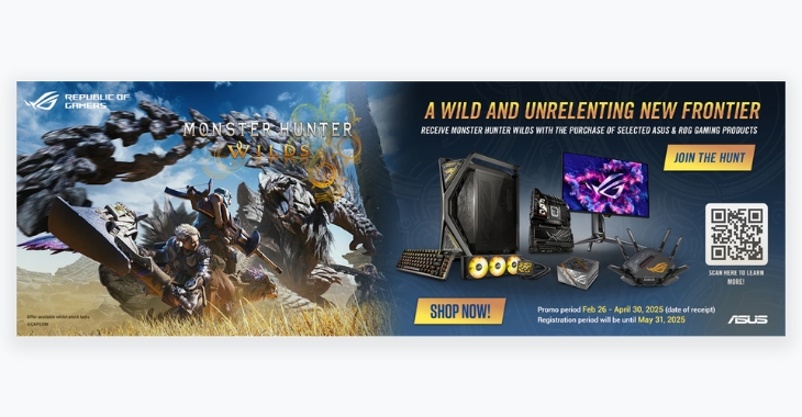Don’t miss this limited-time collab and score Monster Hunter Wild and upgrade your battle station today! From February 26 to April 30, 2025, you can get a FREE copy of the Monster Hunter Wilds game when you purchase select ROG laptops, desktops, or peripherals at DataBlitz! Whether you're tracking fearsome beasts or pushing your gaming performance to the next level, ROG’s cutting-edge hardware ensures smooth, high-performance gameplay. You have only until the end of April 2025 to avail of this super good deal from DataBlitz!