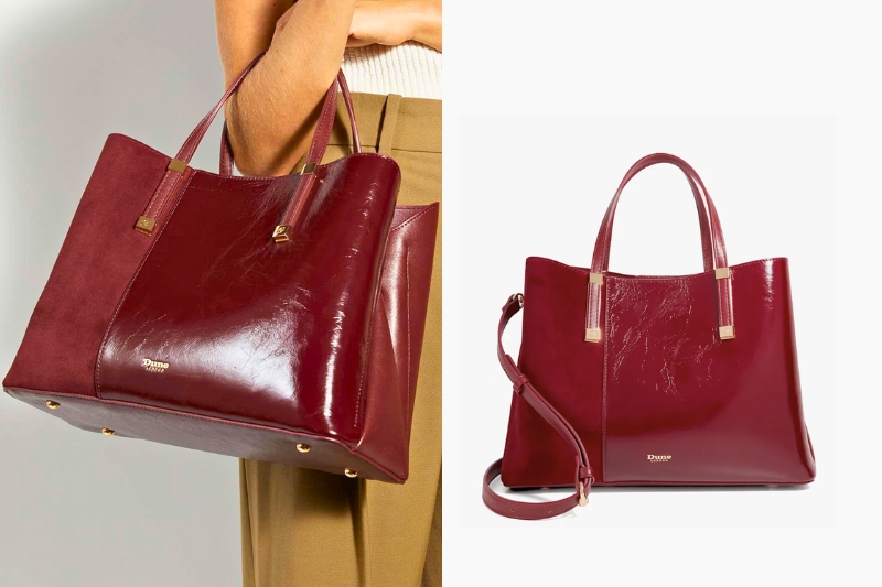 Double grab handles and a detachable crossbody strap provide versatile carrying options. And its roomy interior is practical for daily use—it can fit a hardcover book, a large planner, and a tablet with some space for extras. Finished with multiple internal compartments and signature Dune London branding, the fashion-forward Dorry can handle busy office days, weekend plans, and everything in between.