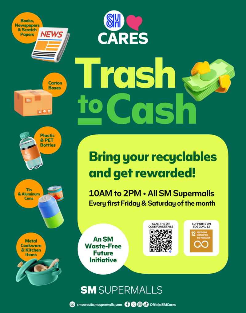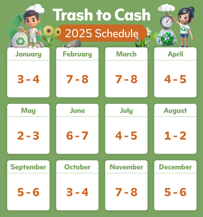 The Trash to Cash (TTC) is a recycling market held every first Friday and Saturday of the month to encourage waste segregation and recycling among our customers, tenants, and the community. The recycling market is open from 10:00 AM to 2:00 PM.
