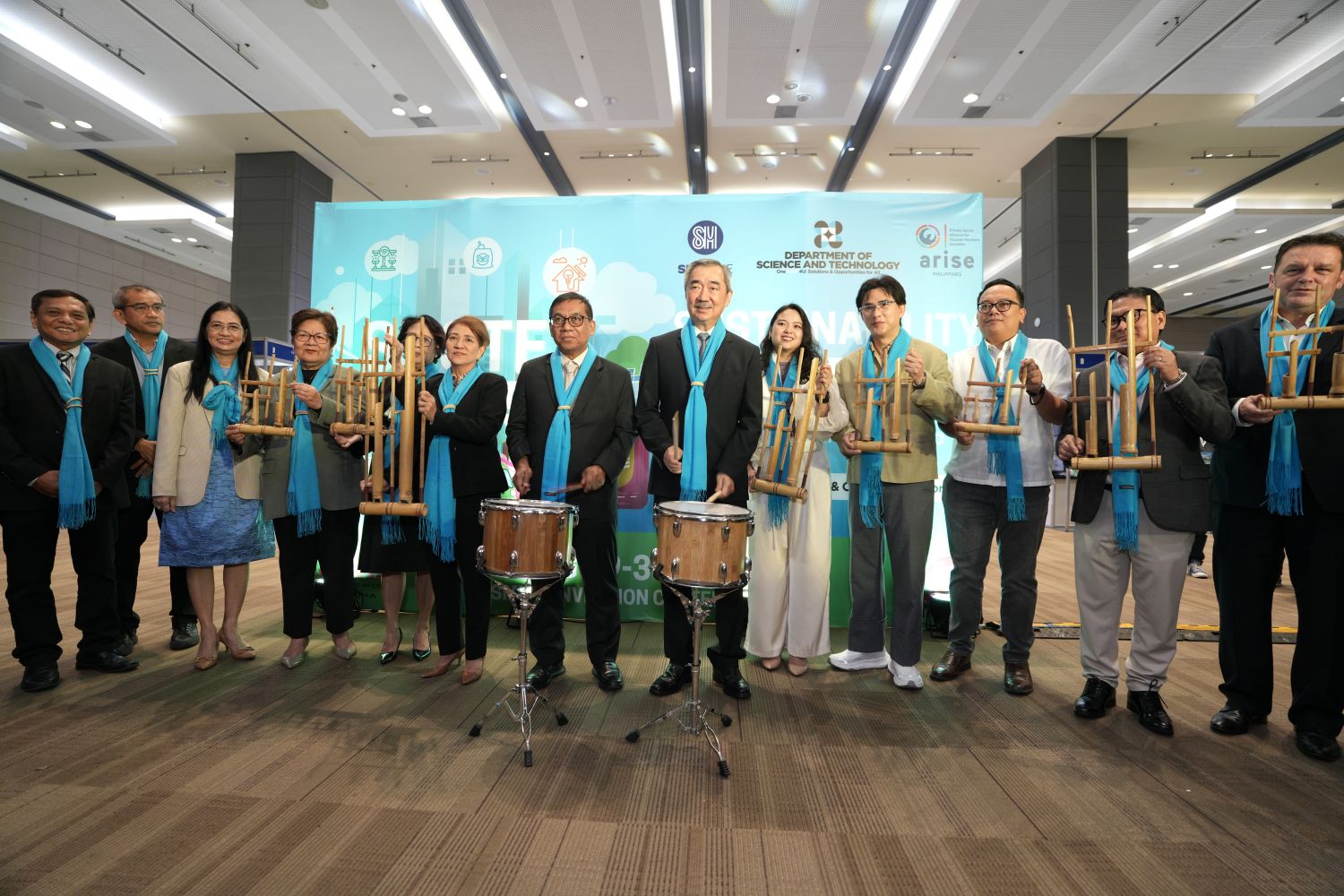 SM and DOST Leaders strike the Beat of Sustainability and lead the ceremonial Solidrum and angklung performance, symbolizing harmony and collective action at the inaugural Sustainability Expo 2025.